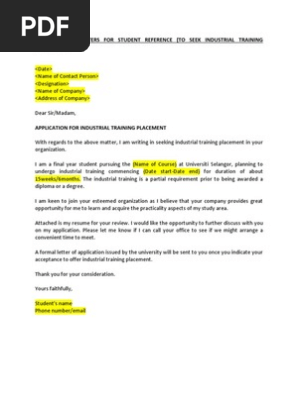 Example Of Application For Industrial Training Placement