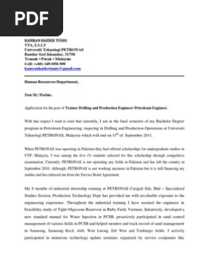 Doc Contoh Cover Letter Petroleum Engineering Muamar Fadlil