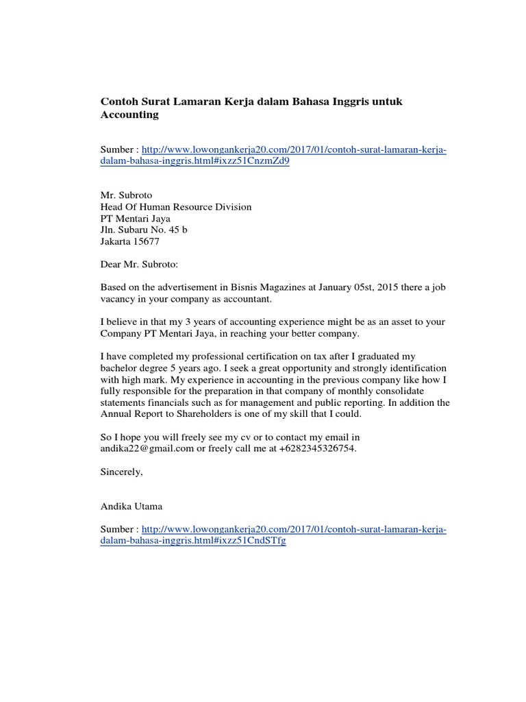 Contoh Lamaran Kerja Dalam Bahasa Inggris Dan Terjemahannya