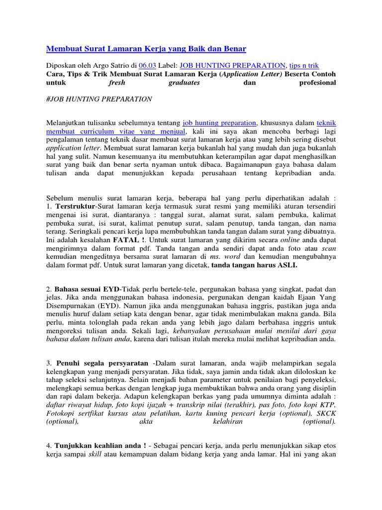 Membuat Surat Lamaran Kerja Yang Baik Dan Benar